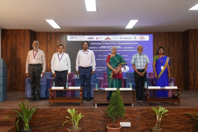 Swadeshi shodh sansthan celebrated national science day in RIT. The chief guest Dr N Subramanian Director SETS addressed the gathering.He offered internships to students of RIT in SETS. Technical sessions were conducted by Mr Murali Meenakshi Sundaram and Mr Sriram srinivasan members of SSS.