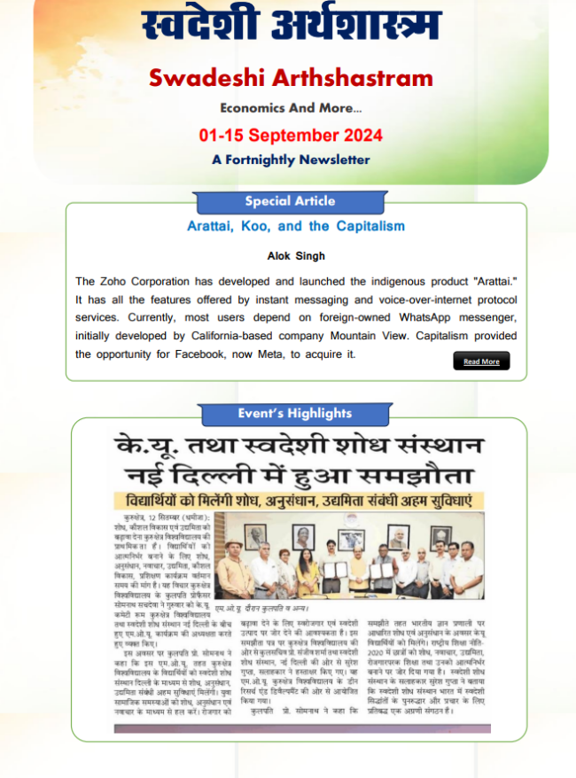 The Zoho Corporation has developed and launched the indigenous product “Arattai.” It has all the features offered by instant messaging and voice-over-internet protocol services. Currently, most users depend on foreign-owned WhatsApp messenger, initially developed by California-based company Mountain View. Capitalism provided the opportunity for Facebook, now Meta, to acquire it. Facebook changed its name first…