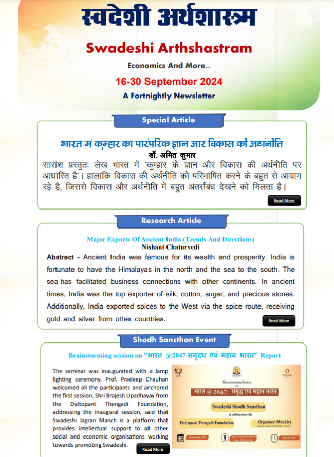 Author: Prof. Amit Bhaduri Publisher: National Book Trust , India Reviewer: Prof. Raj Kumar Mittal, Member-UGC and All India Co-Convener, Swadeshi Jagran Manch Review The book is written by internationally renowned unconventional economist Prof. Amit Bhaduri, who has the distinction of challenging the mainstream theorists and providing solutions within the market economy through state interventions.…
