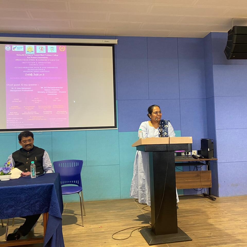 Celebration of entrepreneurs ‘Day at SDNB Vaishnav college for Women situated in Chromepet Chennai