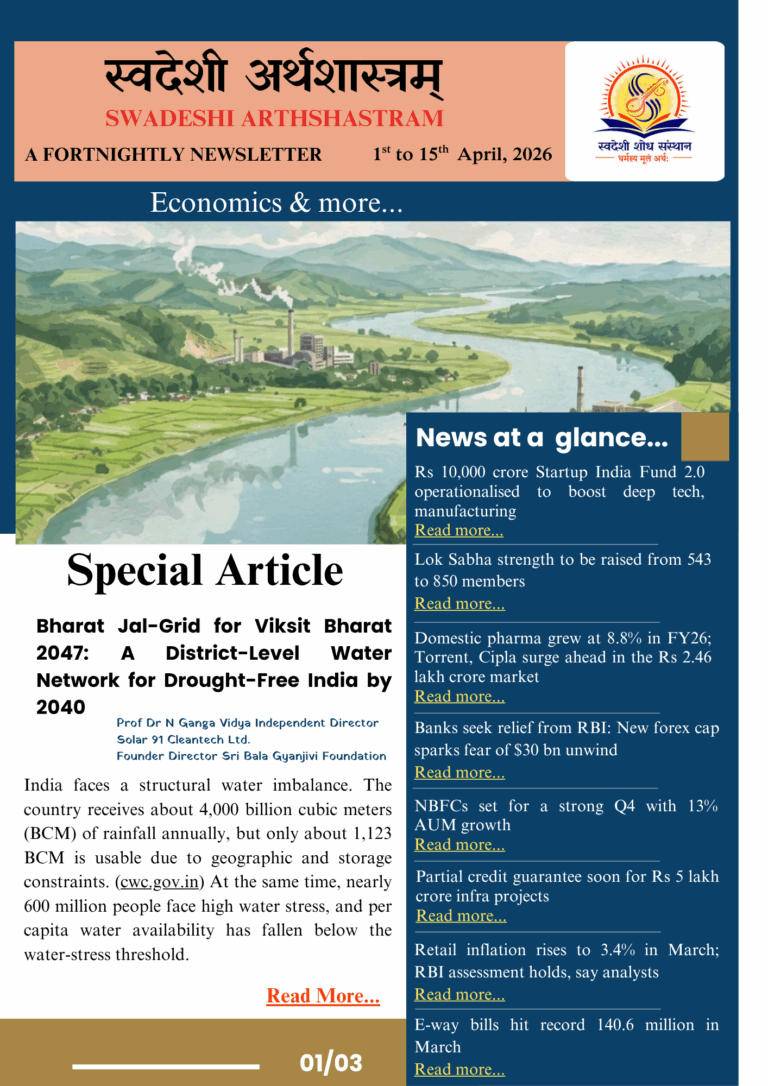 International Conference Vision 2047: Prosperous and Great Bharat Plenary Session-1 Report Building a Leading Economy Date: May 24, 2025 Time: 05:00 pm Venue: Bharat Ratna C. Subramaniam Auditorium Session Incharge: Sh. Ravi Pokharna Ji Three Pillars of Development: Agriculture, Knowledge, and Innovation As Bharat moves toward new dimensions of development, three distinguished speakers…