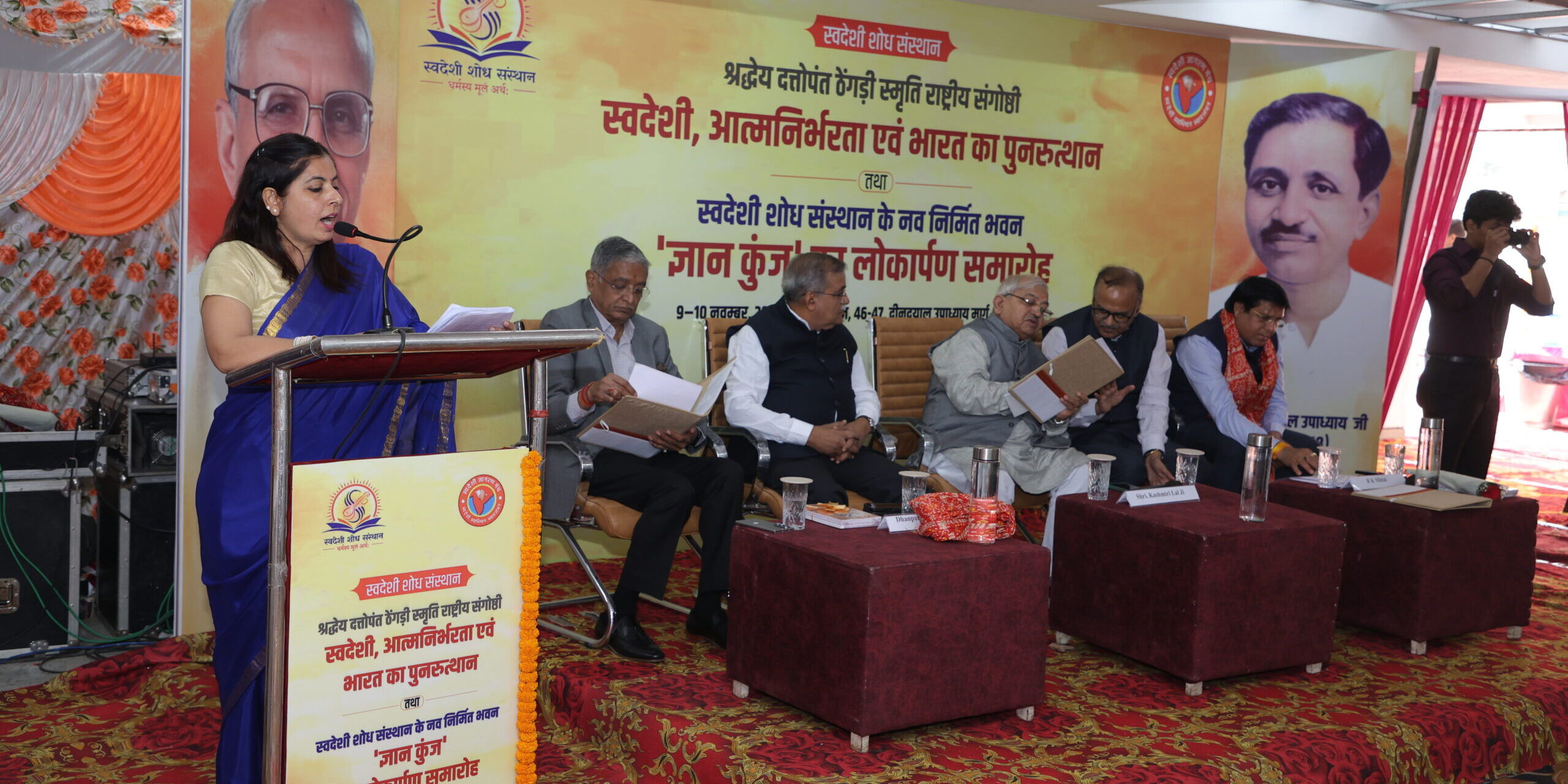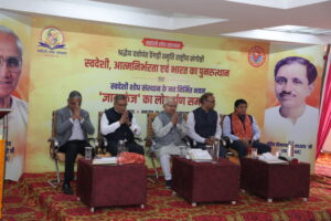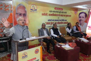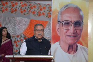 Kashmiri Lal ji traced the founding journey of the Swadeshi Shodh Sansthan, recalling how the idea conceived 27 years ago has matured into a thriving institution. Using the metaphor of the bamboo plant, he described how true growth requires silent preparation, years of unseen rooting before visible progress. Similarly, the Sansthan devoted years to building intellectual and ideological infrastructure before emerging as a national thought institution.