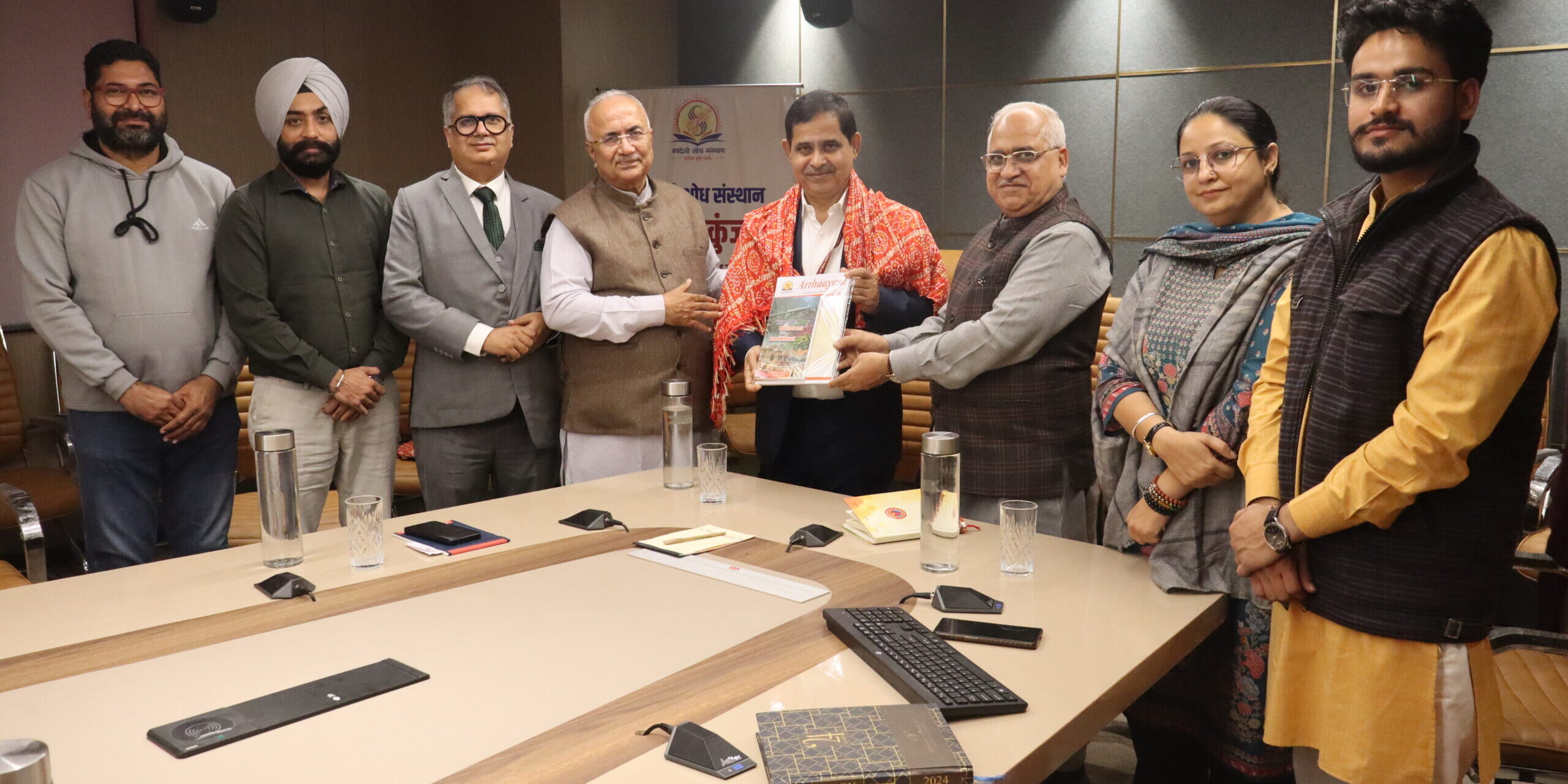 The Managing Director of the Shipyard Corporation of India, Capt. B. K. Tyagi, visited Swadeshi Shodh Sansthan (SSS)/Gyan Kunj on 21st November 2025. The guests were welcomed by the dignitaries of Swadeshi Shodh Sansthan, including Shri Satish Kumar (Seh-Sangathak, Swadeshi Jagran Manch), Prof. Pradeep Chauhan (General Secretary, Swadeshi Shodh Sansthan), Shri Satish Chawla (Chairman, Swadeshi Swavlamban Nyas), Dr. Sarabjeet Kaur (Secretary, SSS), Shri Ankit Sharma (Sangathak, SSS), Prof. Suresh Kumar (Co-head, Delhi Chapter), Prof. Rajinder Kumar (Head, Punjab Chapter), and the researchers of SSS.